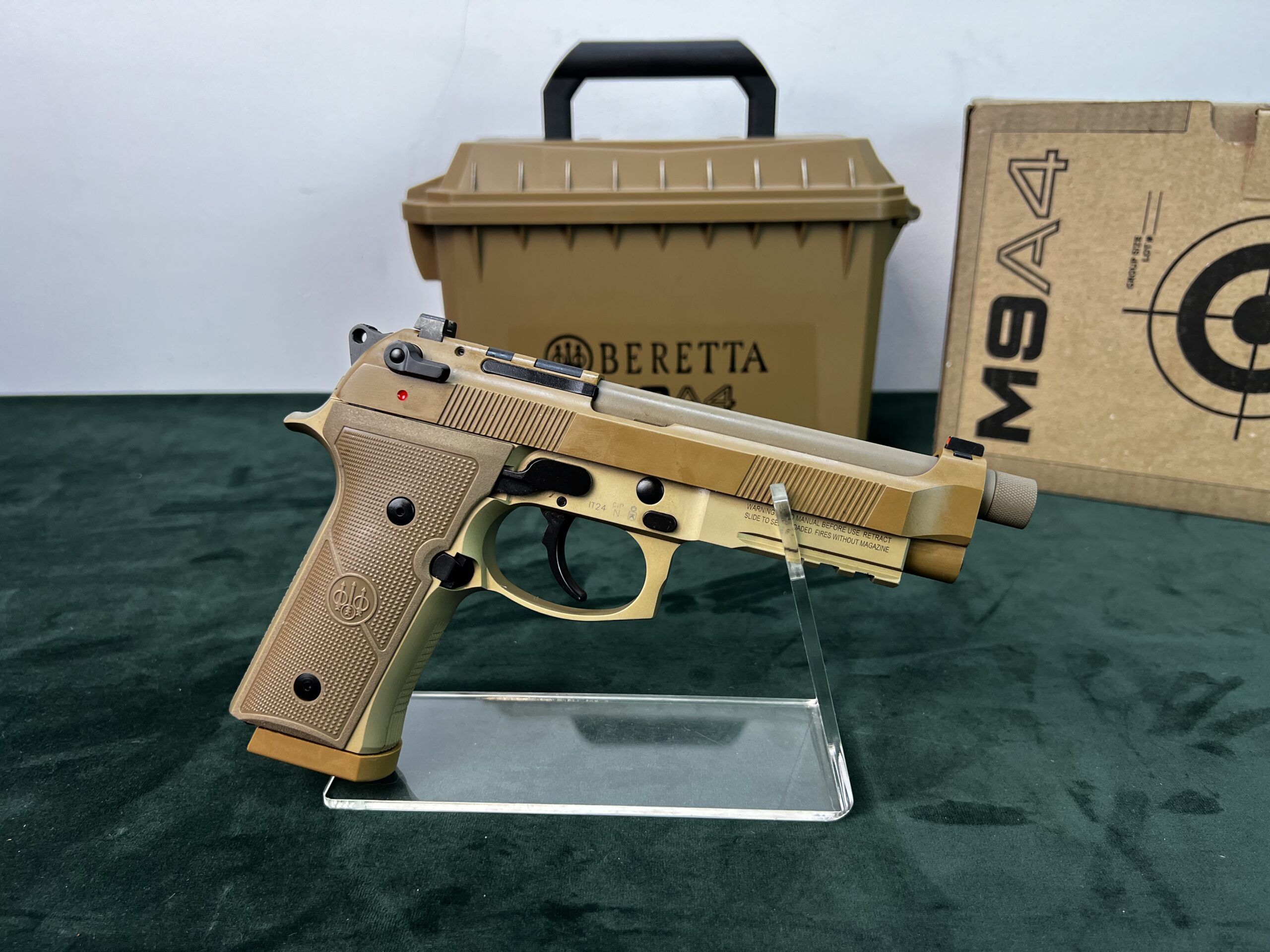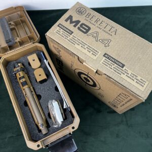 Pistolet Beretta M9 A4 to kolejna wersja serii M9. Spust  SA / DA -pojedynczego i podwójnego działania .Posiada sporo dodatkowych udogodnień, dostosowujących konstrukcję do wymagań współczesnych użytkowników, w tym również wojska. Pierwsze co możemy zauważyć do szkielet z prostym chwytem i szyną akcesoryjną, czyli takie jak w sportowym modelu Beretta 92X Performance, wąskimi okładzinami o agresywnej teksturze.